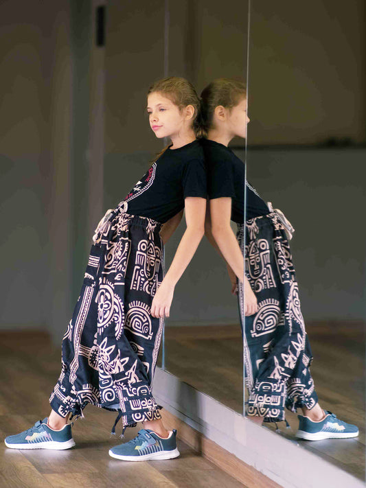Girl's Kids Black Printed Hippy Harem Pants For Dance