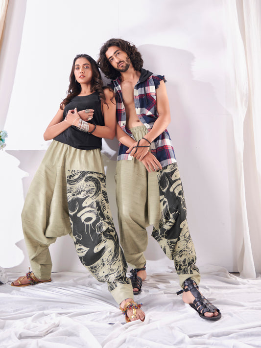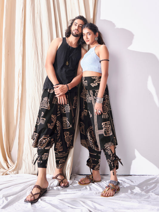 Tribal Brown Printed Harem Pants for Men – Free Size Trousers for Dance, Travel & Yoga