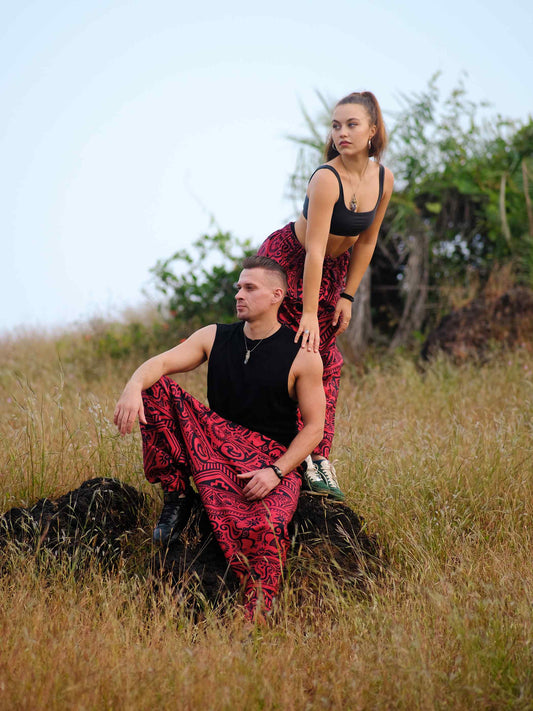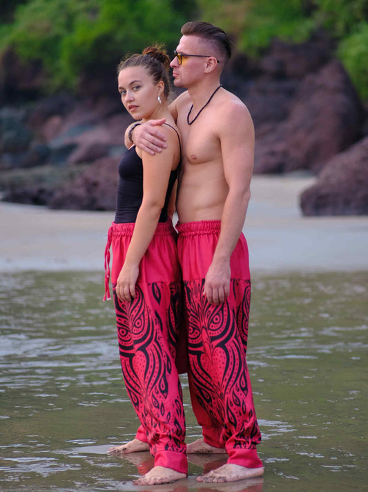 Pack of 2 Unisex Couple Arabic Vintage Boho Hippy Red Aladdin Balloon Harem Pants For Travel