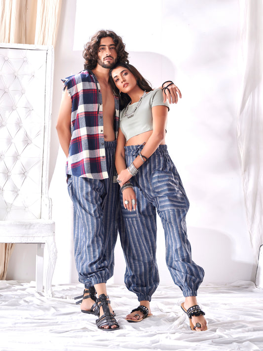 Shades Of Blue Stripes Hoppers Harem Unisex Pants For Men And Women