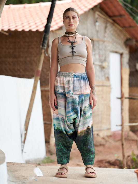 Women's Mountain Inspired Print Baggy Balloon Aladdin Harem Pants