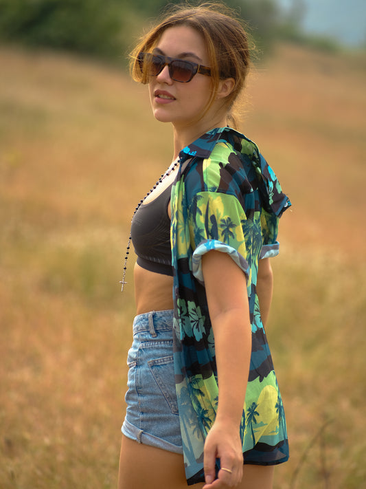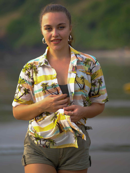 Women's Sunlit Palms Printed Beach Travel Shirt