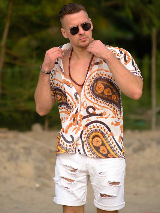 Men's Adventure Beach Inspired Printed Net Travel Shirt
