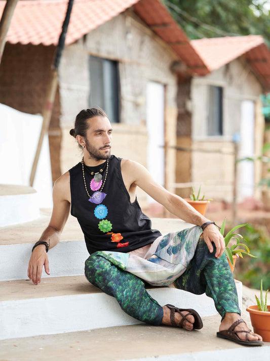 Men's Multi Coloured Cut Out Boho Hippy Harem Pants For Yoga Dance Travel