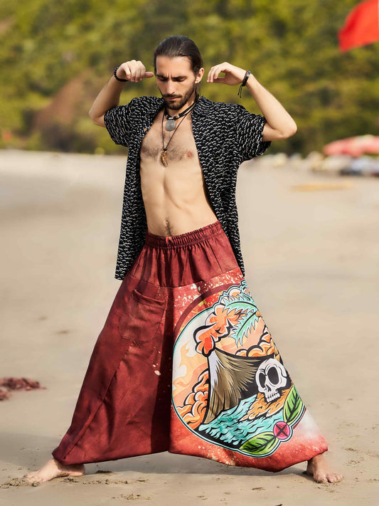 Men's Red Owl Bohemian Hippy Aladdin Balloon Harem Pants For Travel Yoga Dance