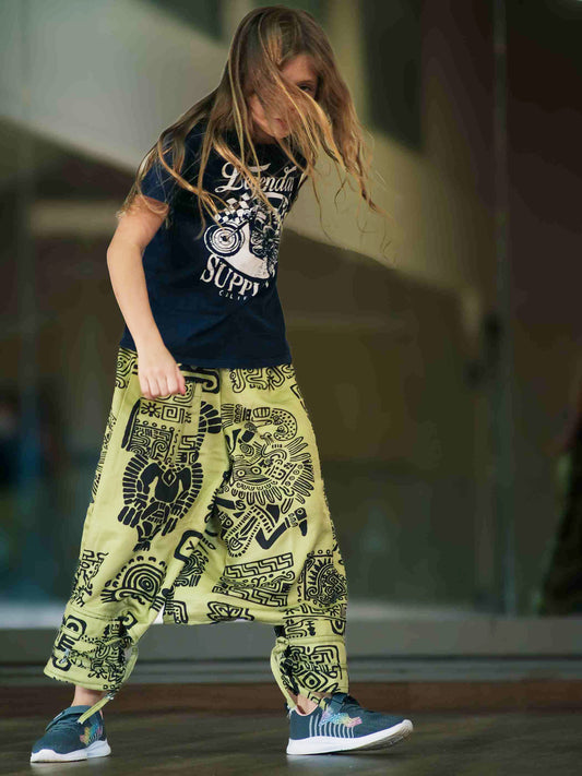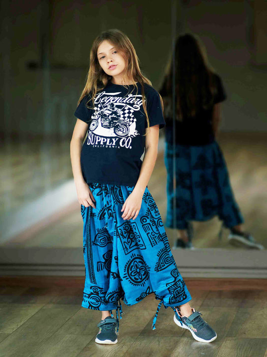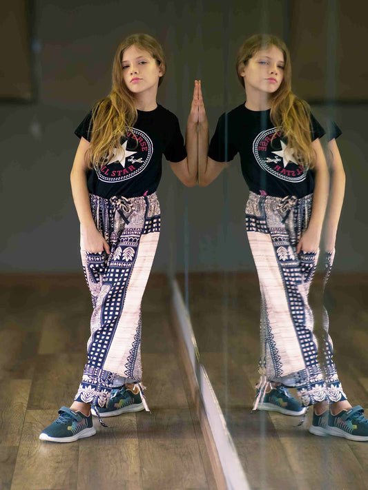 The classic vintage print adds a unique touch to your wardrobe, making these dance harem pants for kids a stylish option for any occasion.