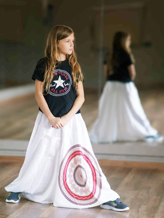 Girl's Kids White Mandala Dhoti Baggy Harem For Dance