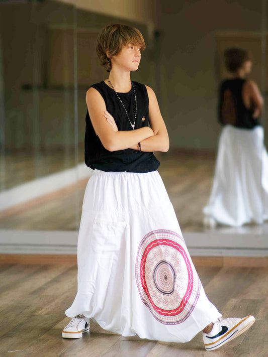 Boy's Kids White Mandala Dhoti Baggy Harem For Dance