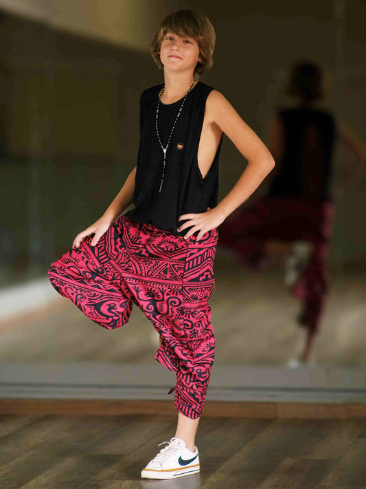 Boy's Kids Red Boho Baggy Hippy Harem Pants For Dance