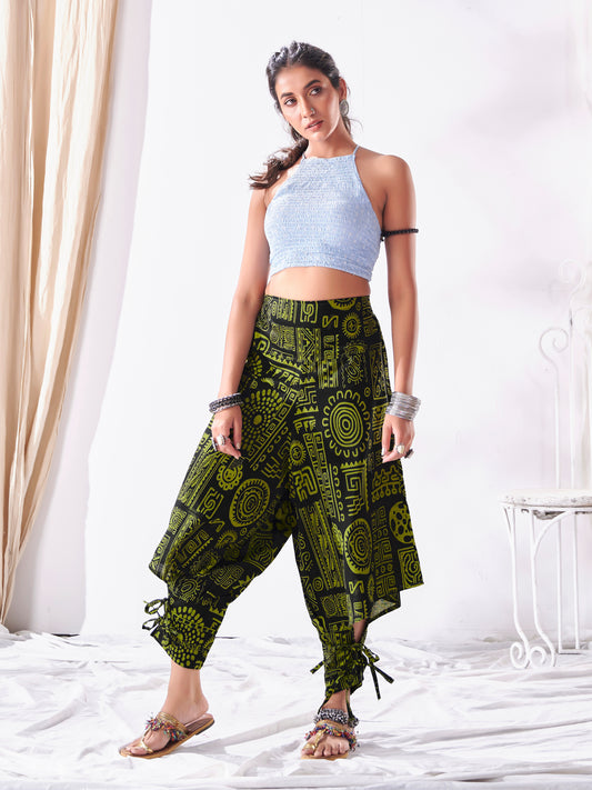 Women's Arabic Neon Green Boho Baggy Harem Track Pant