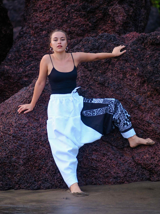 Women's White Bohemian Hippy Harem Pants For Dance Travel Yoga