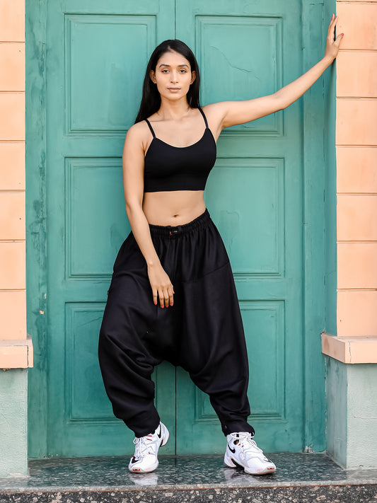 Women's Black Harem Pants For Travel Dance Yoga