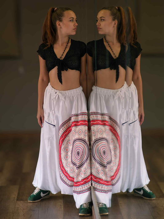 Women's White Mandala Print Dhoti Baggy Harem For Dance Yoga Travel