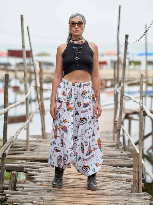 Introducing our latest addition to our collection of bohemian-inspired fashion - the Women's Harem Pants with Hand of Fatima and Evil Eye design. These stunning pants feature a unique and intricate design, combining the protective Hand of Fatima and Evil Eye symbols, making it not only fashionable but also meaningful.