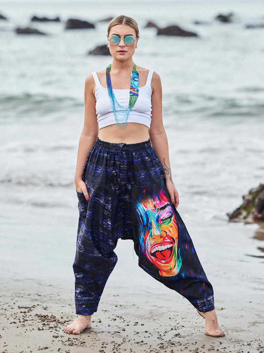 Women's Artistic Paint Print Bohemian Hippy Harem Hammer Pants