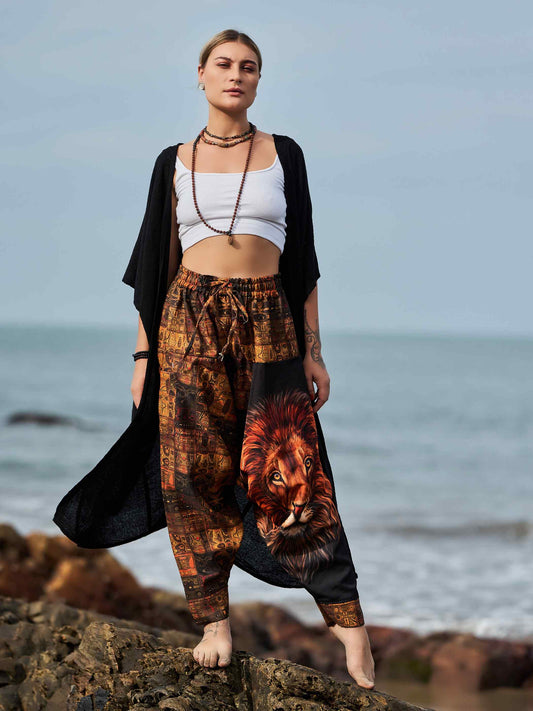 Women's Lion Print Hippy Baggy Harem Pants For Travel Dance Yoga