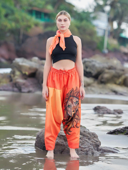 Women's Artistic Orange Lion Bohemian Hippy Harem Pants For Yoga