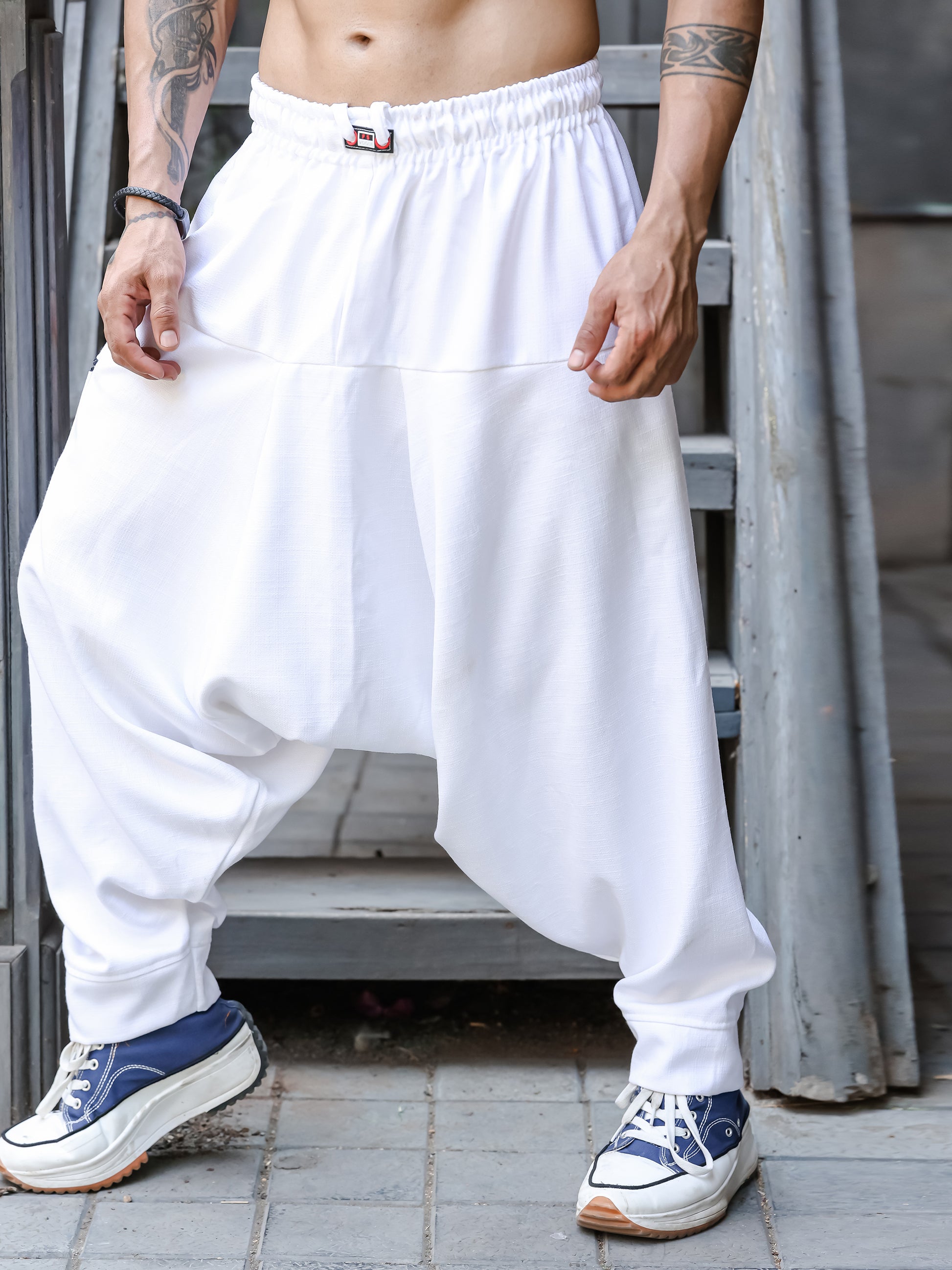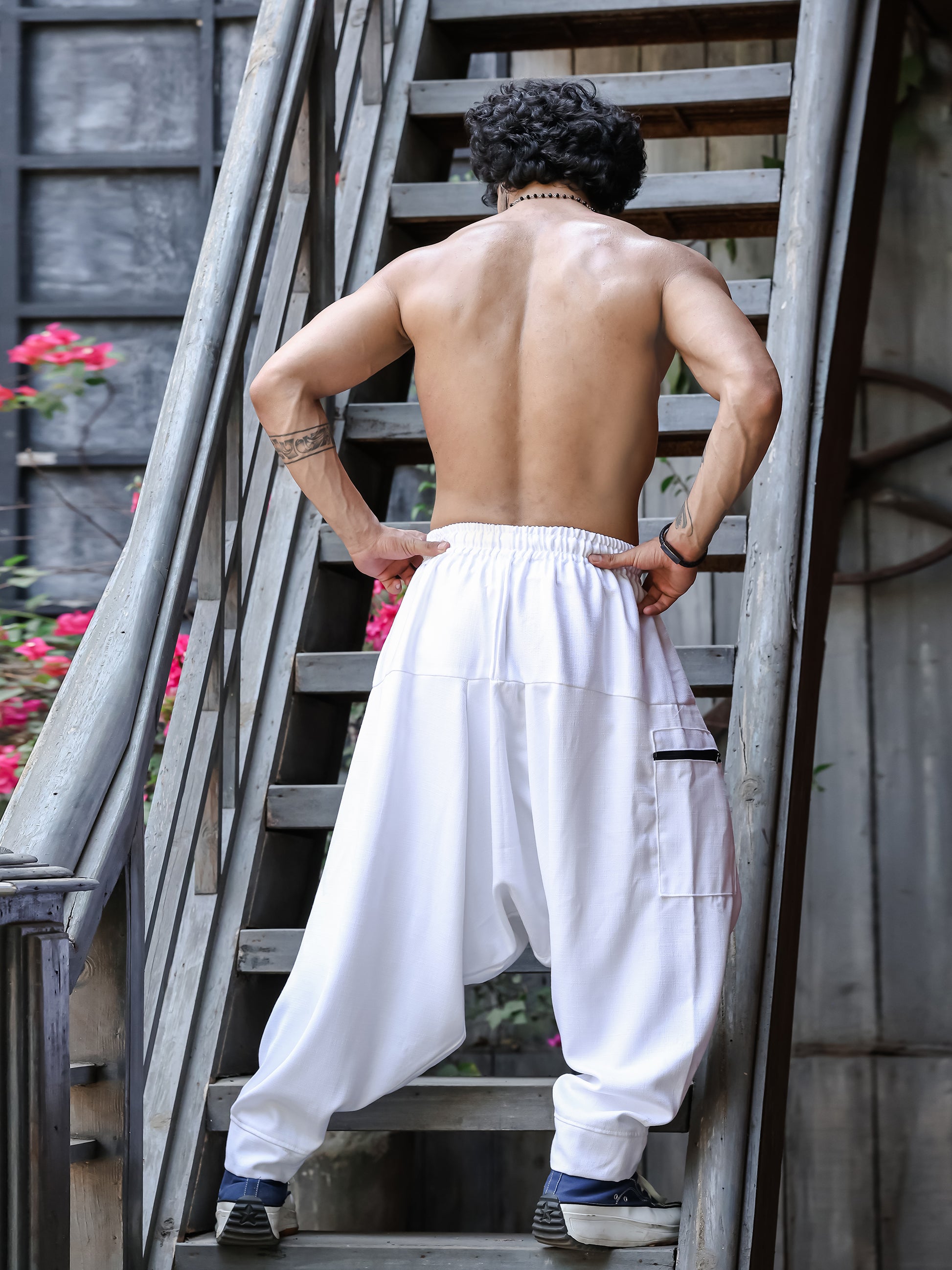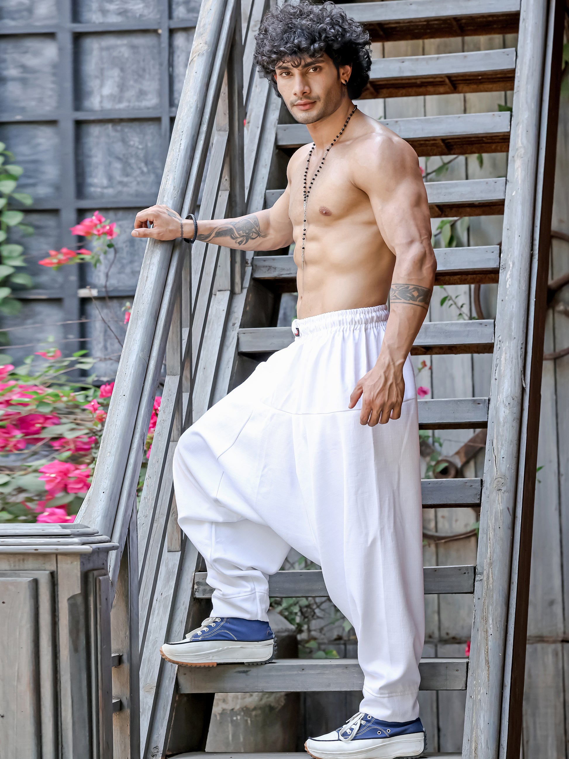 Introducing our stylish and comfortable White Harem Pants for men, perfect for dancers, yoga enthusiasts, and travelers.
