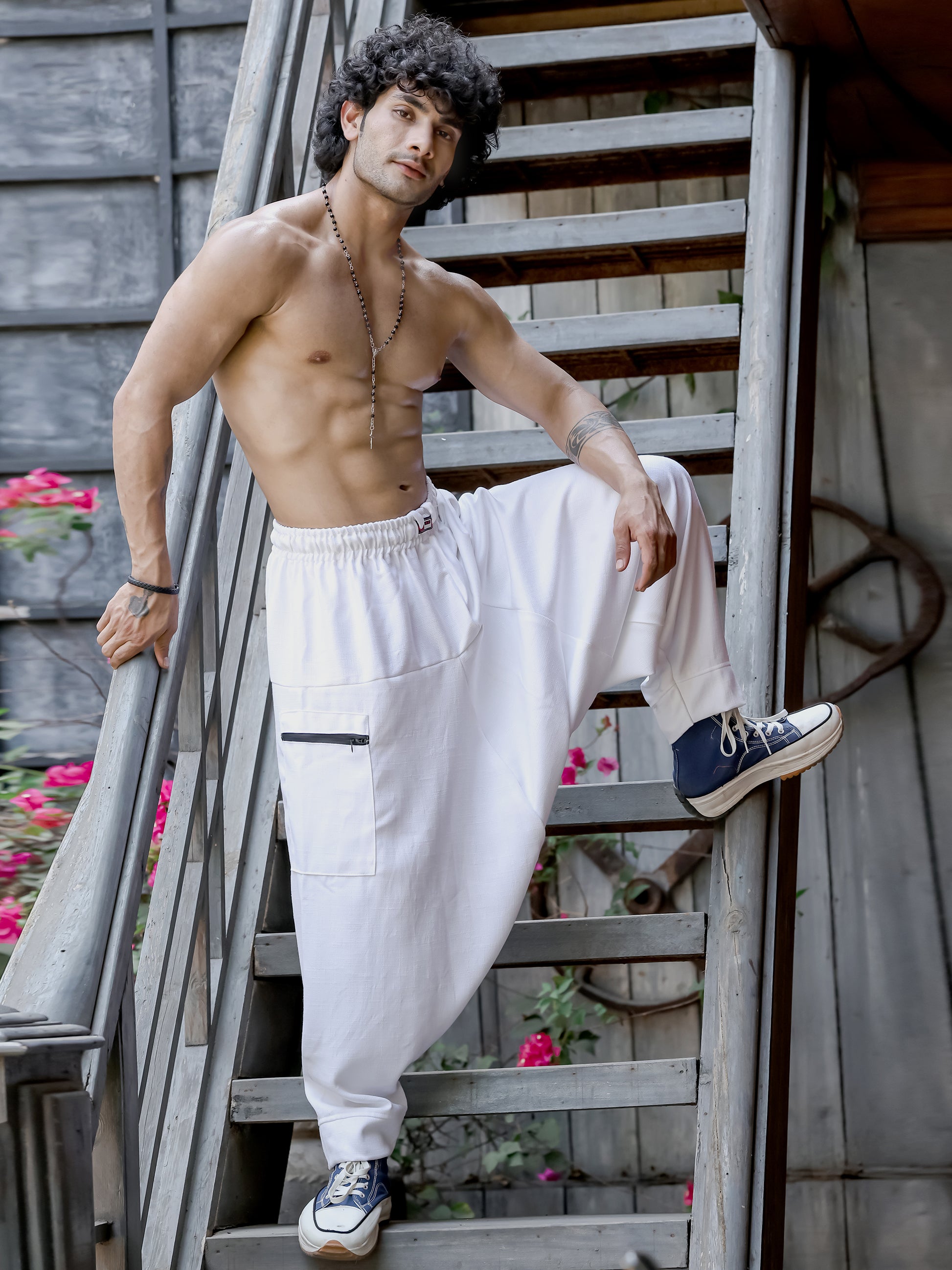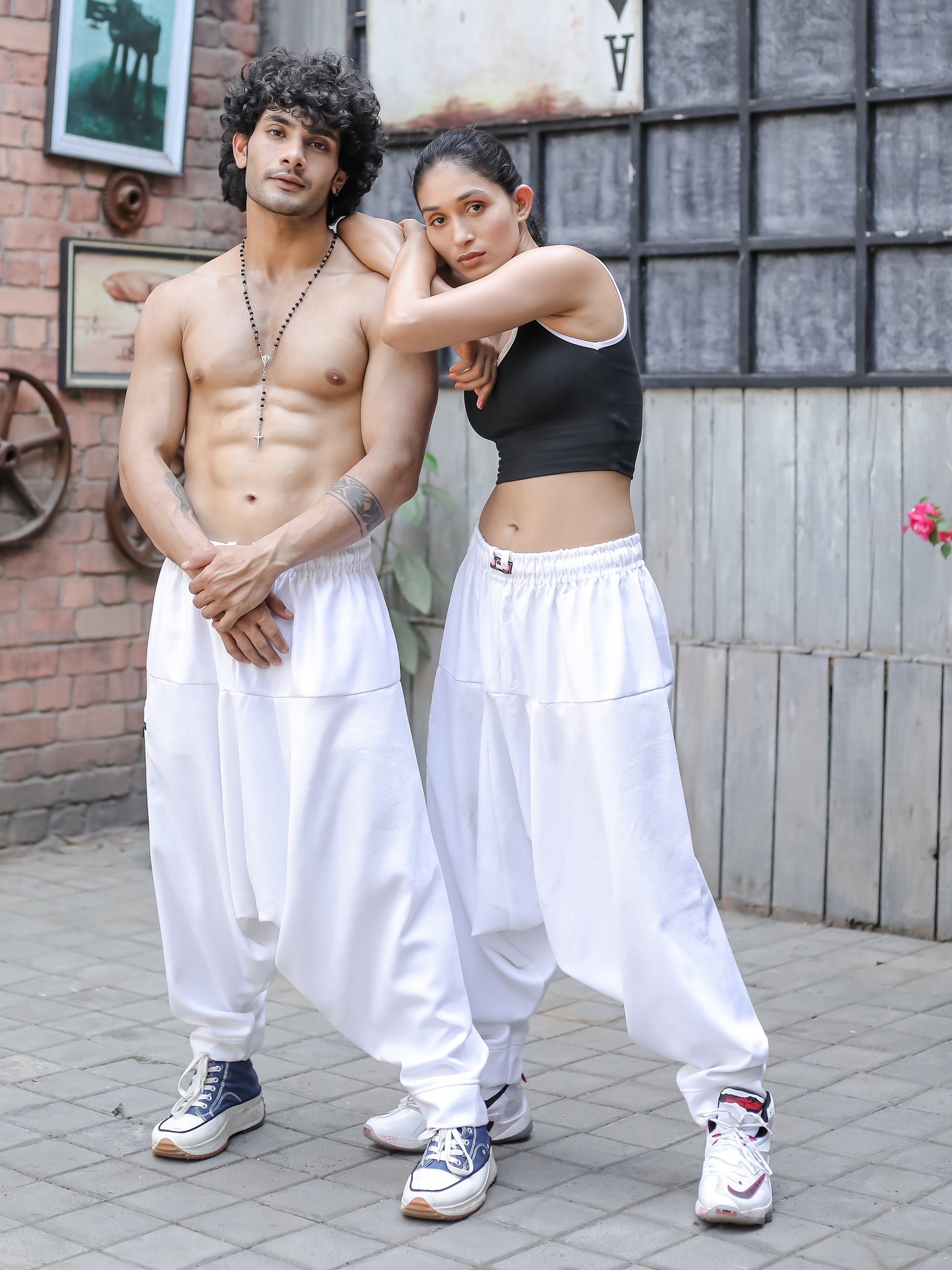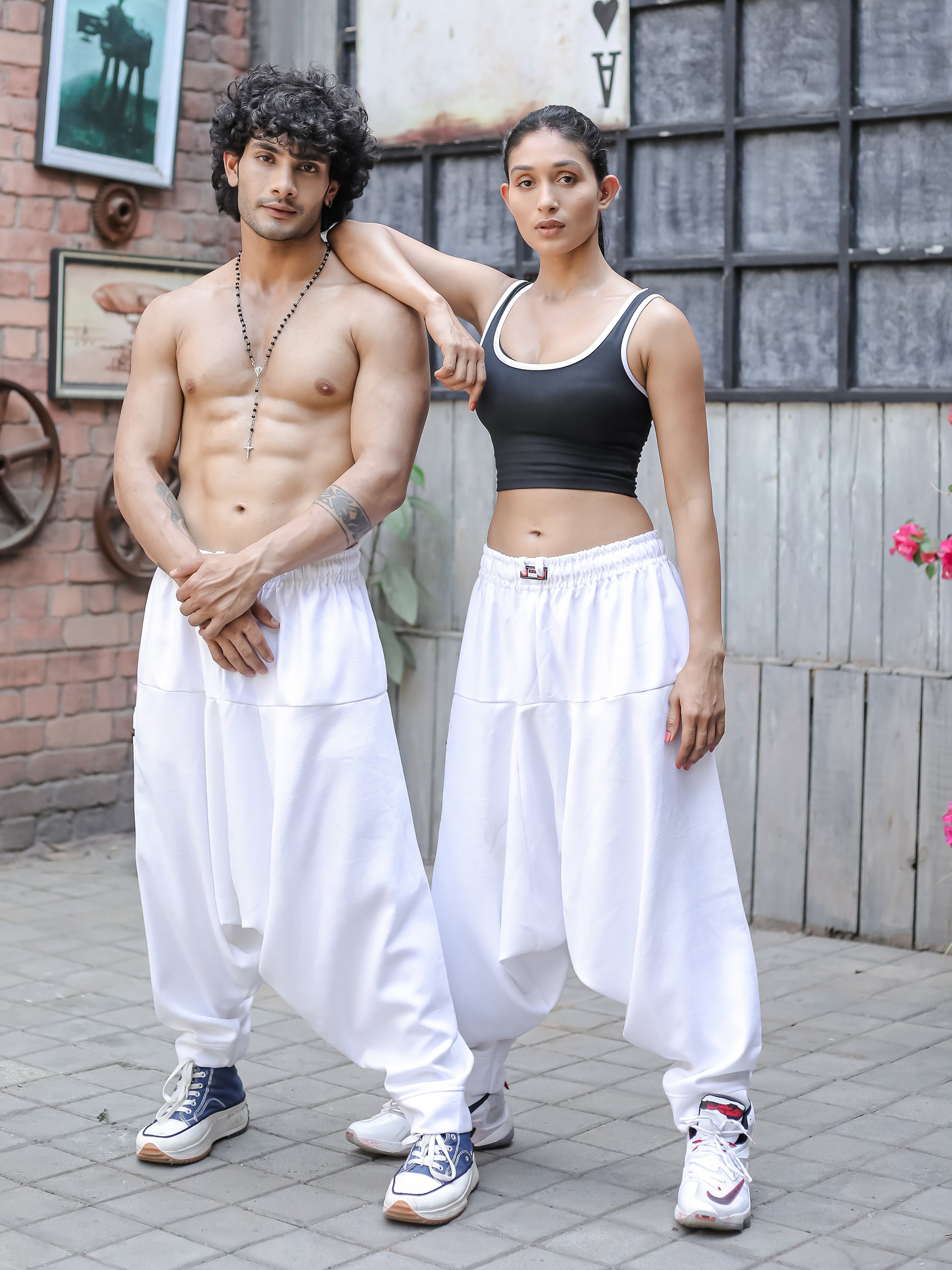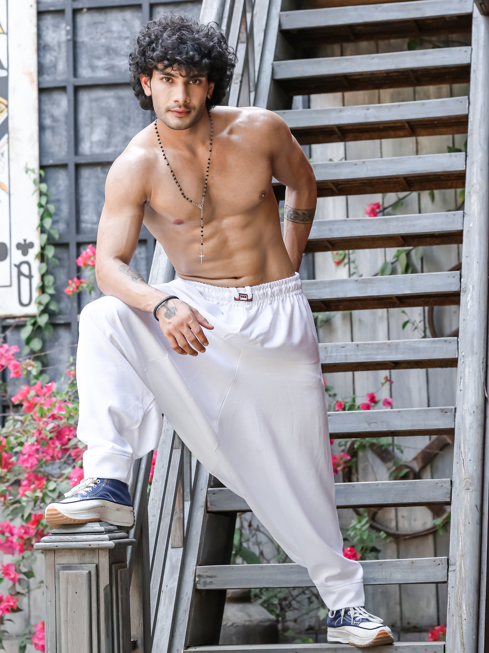 Introducing our stylish and comfortable White Harem Pants for men, perfect for dancers, yoga enthusiasts, and travelers.